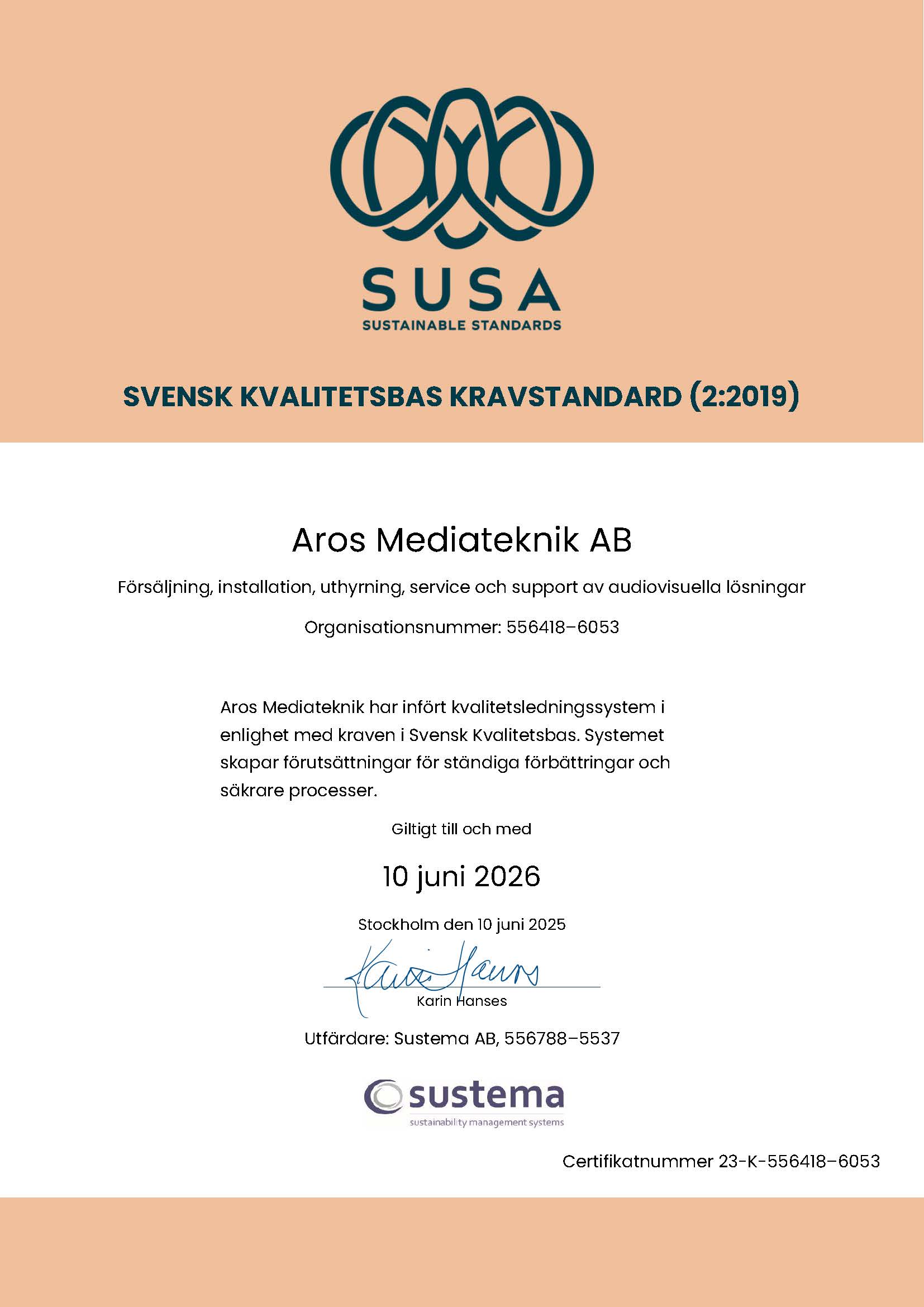 Aros Mediateknik AB kvalitets – och miljöpolicy